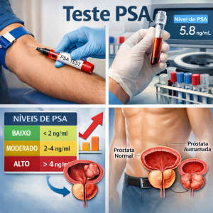 PSA é uma proteína produzida pela próstata, em exames de sangue usado principalmente como marcador para auxiliar na detecção precoce do câncer de próstata e no monitoramento da eficácia do tratamento. Em caso de hipertrofia benigna da próstata, e em caso da inflamação prostática aguda ou crônica (prostatite) também têm taxas elevadas.